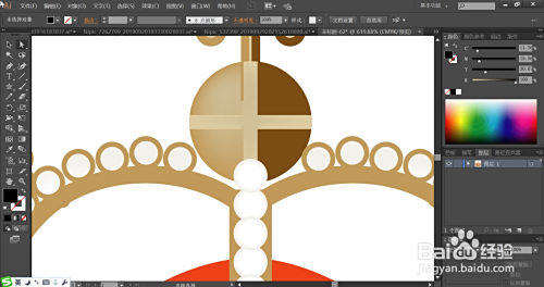 利用灰白色的渐变填充王冠上面的圆珠,再用暗金色填充王冠的支架路径。