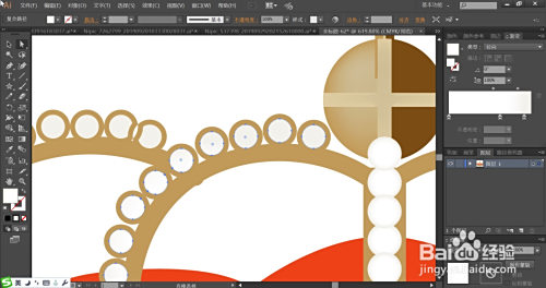 圆环的矩形边用暗褐色填充,圆珠用米灰色与米白色搭配填充,中心的圆珠用桔红色与灰白色搭配填充。