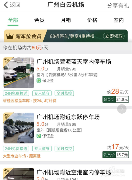其次,安装好这条目软件后,找到我们需要的目标:机场高铁泊车-机场泊车-广州白云机场泊车,可以看到良多机场周边的泊车场可以选择