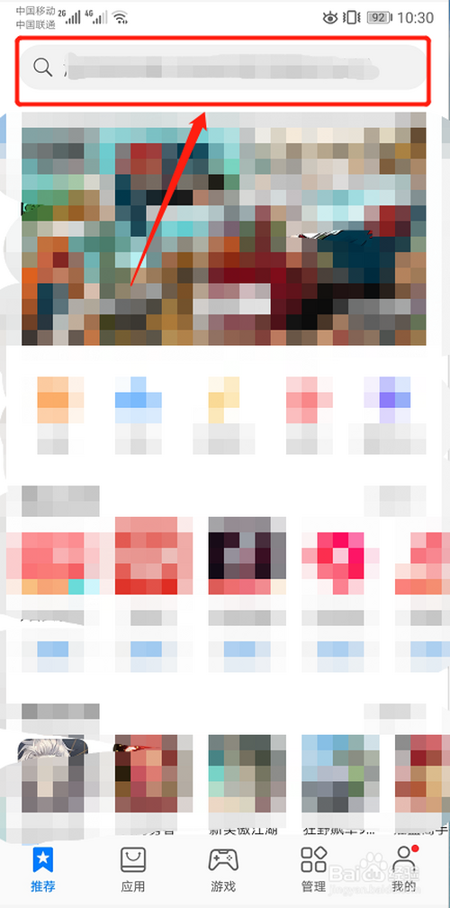 打开应用市场之后,可以看到上方的”搜刮框“。