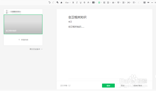 接着,在弹出的页面中以写文章的形式将想要传布的“创卫相关常识”填写,并插入相关图片,如下图所示: