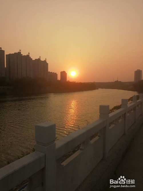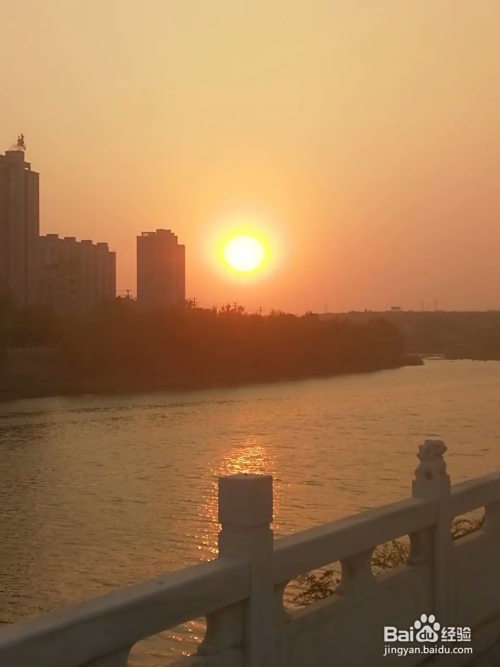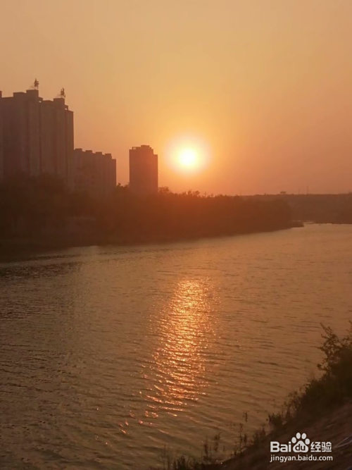 摄影时,把太阳放在屏中心,若是是在河滨看落日的话,可以让那缕金光错位在河堤上,对焦后,按摄影键即可。