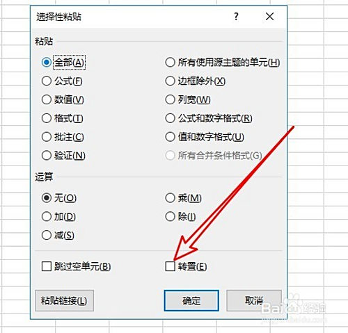 然后再打开的窗口找到并勾选转置前面的复选框。