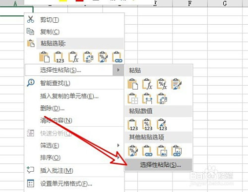 然后在二级菜单中点击选择性粘贴的菜单项。