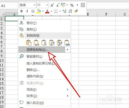 接着右键点击表格,空白位置选择选择性粘贴菜单。