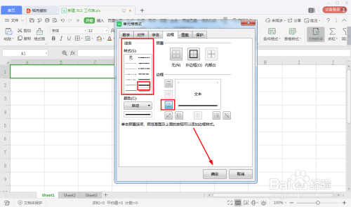 我们先单击线条的样式然后在单击下边框最后点击确定