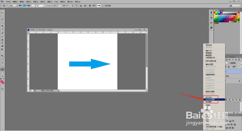 第六步:选择“自界说东西”题目栏的箭头外形,在新建文档上绘制一个箭头图形;如图
