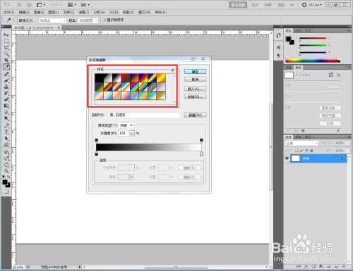 点击【渐变东西】-【线性渐变】,点按【可编纂渐变条】,弹出渐变编纂器;