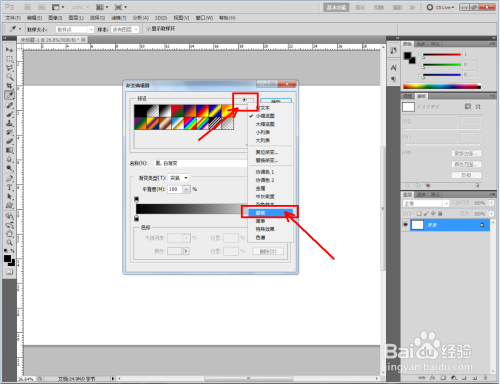 点击图示小三角-【蜡笔】,追加蜡笔到渐变选项栏中;
