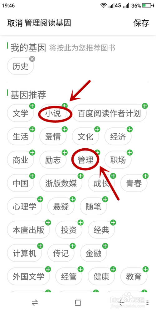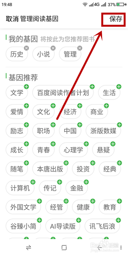 进入【我的阅读基因】页面,鄙人面选项中选择感乐趣的单击,即可添加“基因”到“我的基因”中