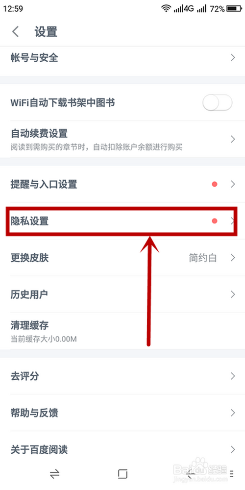 4、在【设置】页面下半部门,选择【隐私设置】选项单击