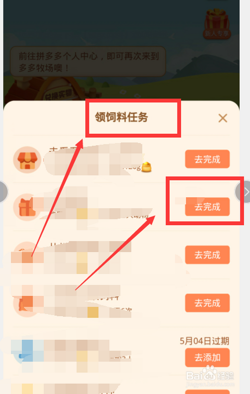 第五:在【领取饲料】界面选择使命点击【去完当作】按钮。