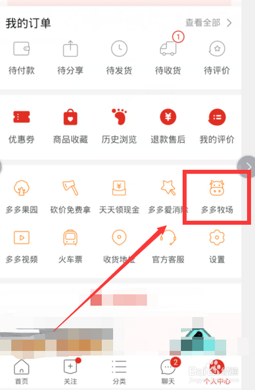 第二:进入小我界面点击中心的【多多牧场】选项按钮。