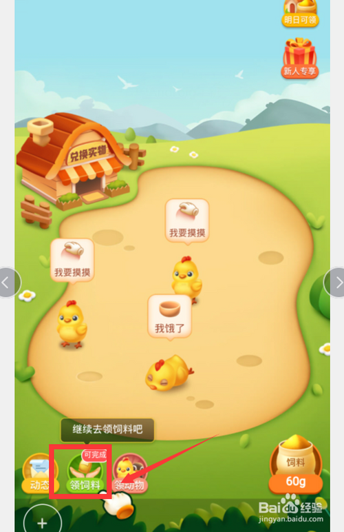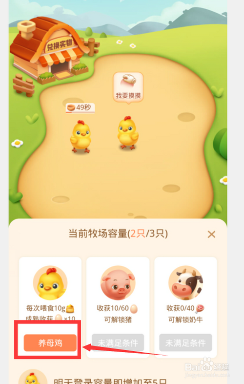 第三:进入多多牧场勾当界面进行豢养【动物】并喂食。