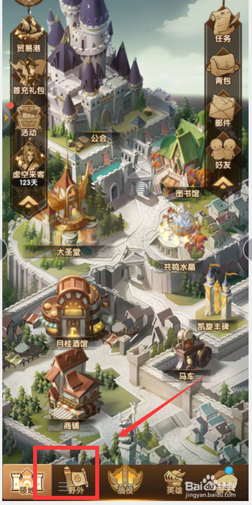 第四:返回剑与远征首页点击左下角【野外】选项。