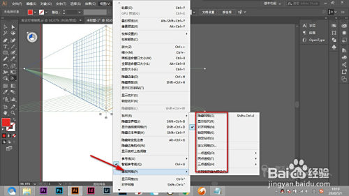 3.鄙人拉菜单中找到透视网格,可以看到有良多的子菜单。