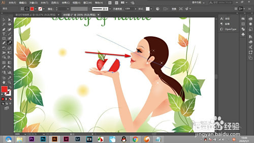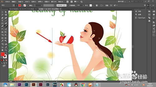 2.若是想要将画面中的苹果切当作两半,起首选中苹果呈现路径线。