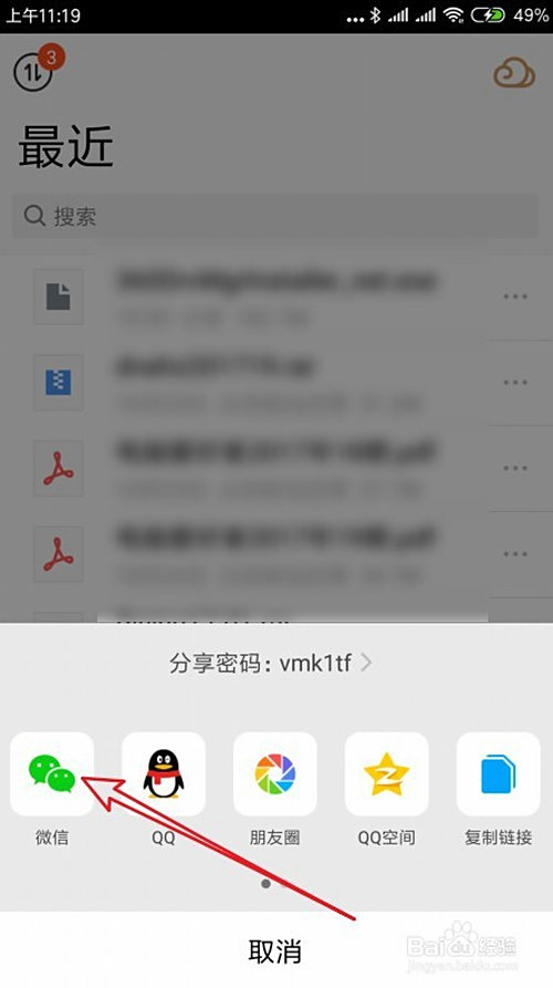 在打开的腾讯微云软件本家儿界面点击要分享文件后面的更多按钮。