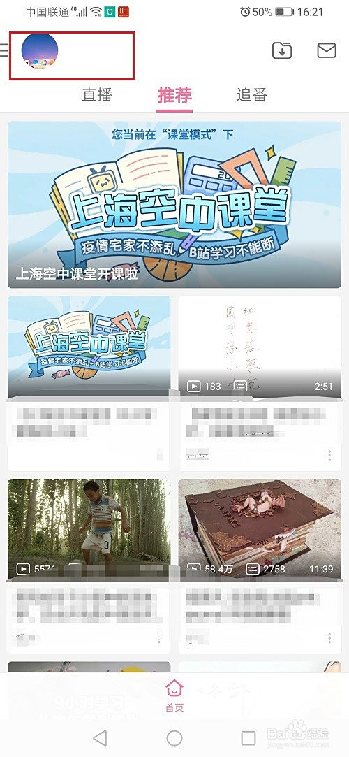 第一步打开哔哩哔哩,进去之后,点击账号头像,如下图所示: