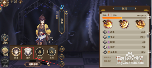 第五:选择已经解锁的【本家儿角】-【白泽】点击改换。