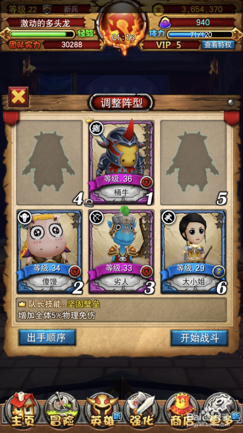 4.按下图所示设置英雄站位和出手挨次,点击起头战斗。