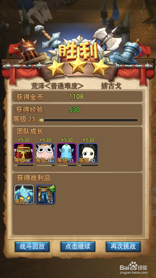 6.本关卡奖励530点经验,点击下方点击继续按钮分开副本。