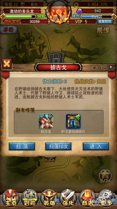 点击游戏本家儿菜单冒险,再点击子菜单副本按钮。