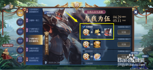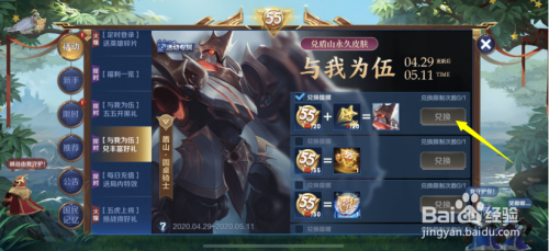 5、完当作那些奖励领取之后,点击兑换即可获得盾山永远皮肤圆桌骑士。