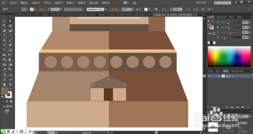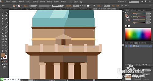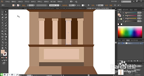 雕像的底座利用灰褐色、咖啡色、浅灰色搭配填充分歧的布局件,正面的立柱利用浅灰色填充,立柱内部的暗影利用较暗的咖啡色填充,基座的本家儿体利用灰褐色填充并呈现左侧亮右侧暗的结果,完当作女神雕像设计。