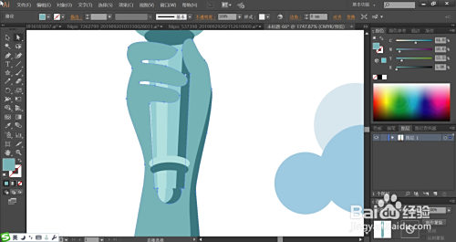 雕像的本家儿体利用青色与暗青色填充,利用暗青色来呈现雕像上面的凸起结果,身体正面的高光利用浅青色填充。