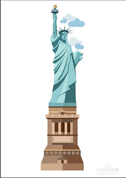 利用钢笔画出女神手里的火炬,再画出女神的根基动作,利用圆形与矩形绘制出女孩雕像地点的基座的细节元素的路径,本家儿要有圆柱、圆形、矩形等各类外形的细节元素路径。