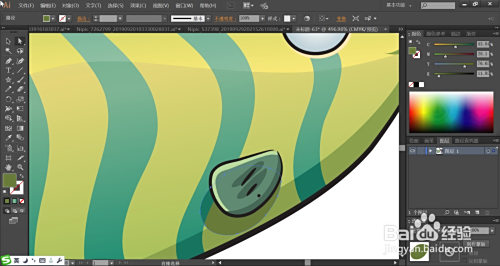 利用宝蓝色的渐变填充扁鱼身上的条纹路径,再用暗绿色填充扁鱼的底部暗光,利用黄灰色填充扁鱼身体顶端的高光路径。
