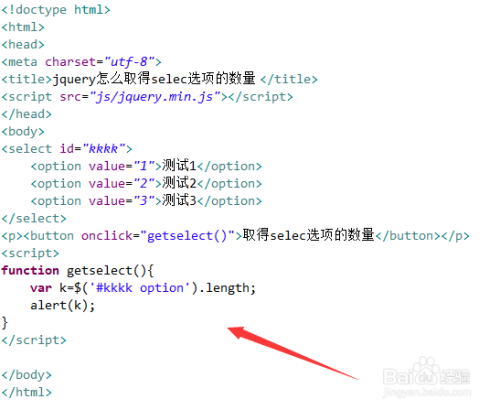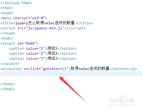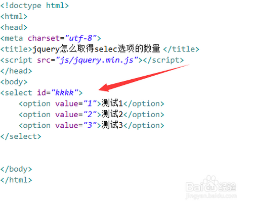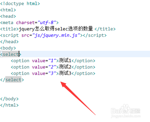 新建一个html文件,定名为test.html,用于讲解jquery怎么取得selec选项的数目。