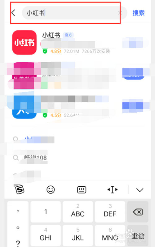 第二:在搜刮框内输入【小红书】点击软件安装。