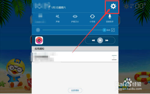 起首我们要进入设置页面,经由过程下滑屏幕或者左滑屏幕两种体例都可以找到“ 设置”功能。