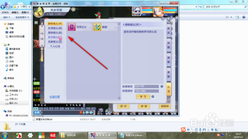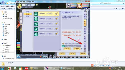 在左侧的心法菜单中,我们选择想要进修的心法,如下图所示