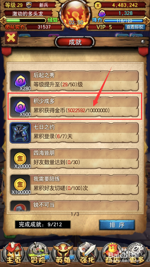 时候就是金钱当作就的告竣前提是累计获得500万金币。若是达到此前提,我们可以看到当作就完当作提醒。