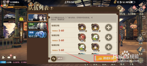 第三:弹出组队选项面板点击右下角的【建立步队】按钮。