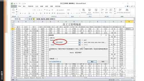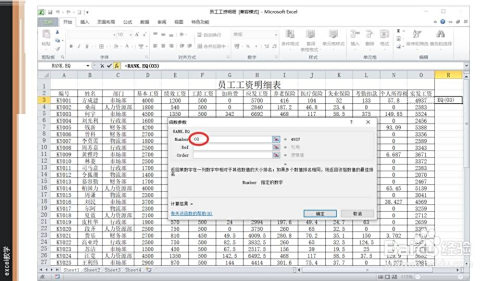 点击确定后,在R3单位格中呈现数值5,即O3的数值4937在整个工资列中排第5。