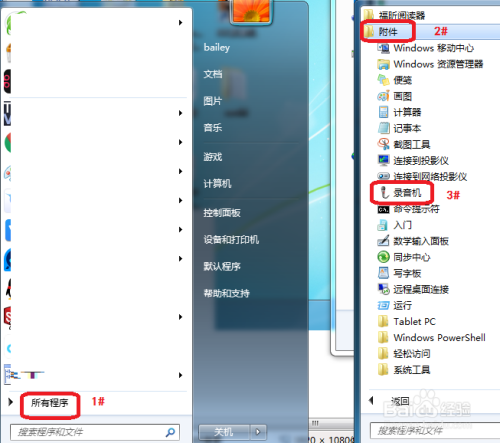 用鼠标左键单击微软图标,这时辰会打开起头对话框,然后鼠标左键依次单击 所有程序--附件--灌音机。 如下图所示: