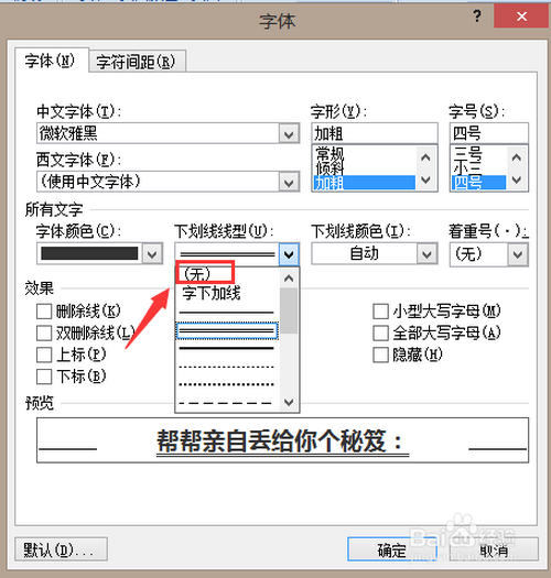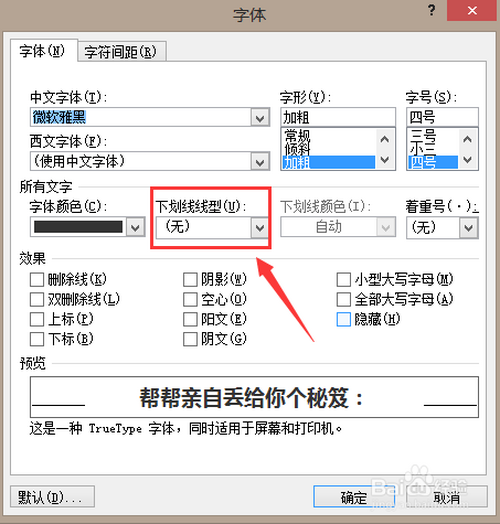 找到“下划线线型”
