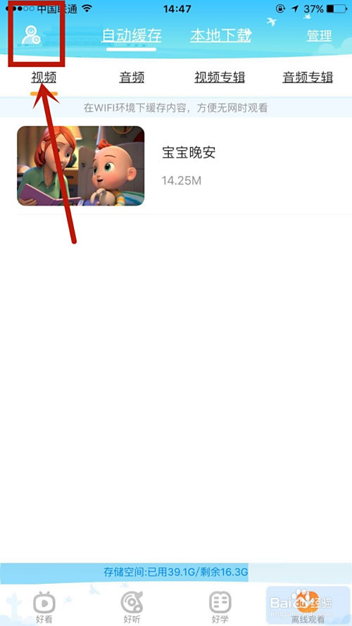 1.打开宝宝巴士儿歌,点击右下角的离线不雅看。