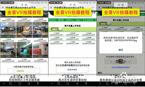 上传完当作后,再点击生当作VR全景按钮,稍等半晌,办事器就会返回拼接生当作的VR全景。