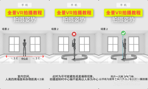 拍摄姿势(场景一:若拍摄空间相对坦荡,人离周围墙面和杂物距离>3米,