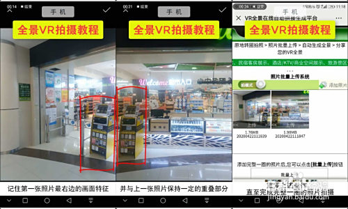 记住第一张照片最右边的画面特征,动弹身体使拍摄窗口调整到下张照片的位置,并与上一张照片连结必然的重叠部门;反复上述动作,直至完当作完整一圈的照片拍摄。