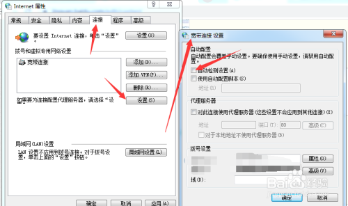 点击毗连选项卡下面的设置按钮,如下图