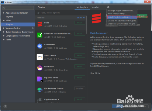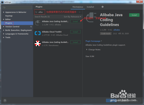 找到Plugins插件视图,输入要查找的插件名称,点击Install