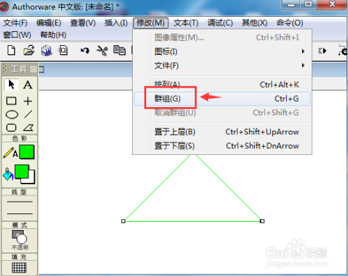 用以上方式,我们就在Authorware中建立好了一个绿色等腰三角形。