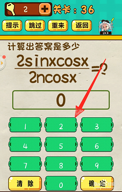 最后成果如下图,点击绿色键盘,输入谜底6点击确定,呈现绿色对勾,即可过关。