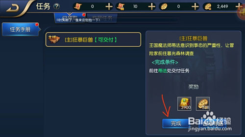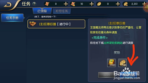 然后选中使命“狞恶巨兽”,点击右下角的主动寻路